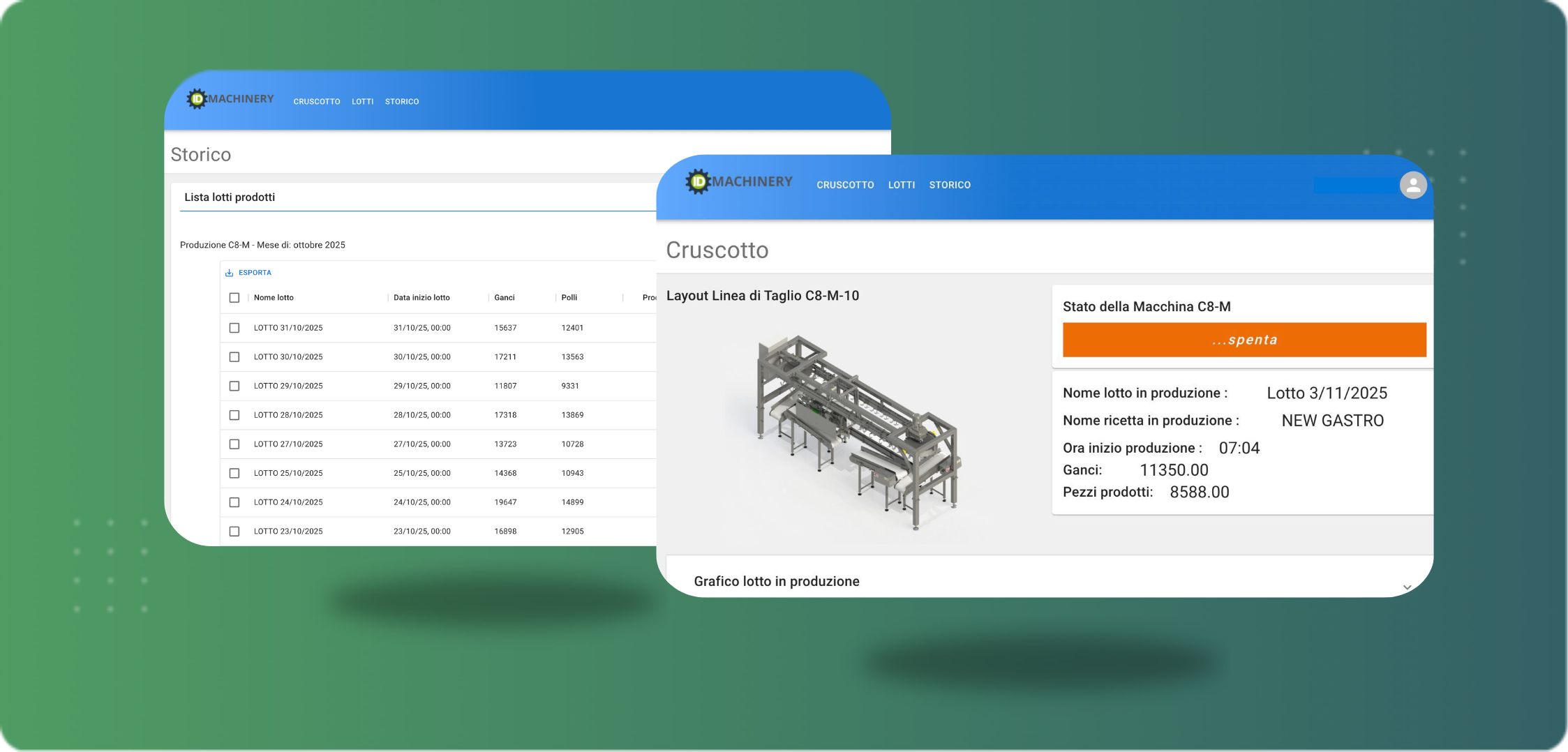 IDmachinery è la piattaforma pensata per digitalizzare e ottimizzare i processi produttivi della tua azienda. Dalla gestione dei macchinari alla manutenzione, dalla tracciabilità alla reportistica, consente di avere controllo completo e dati affidabili per decisioni basate sui fatti.